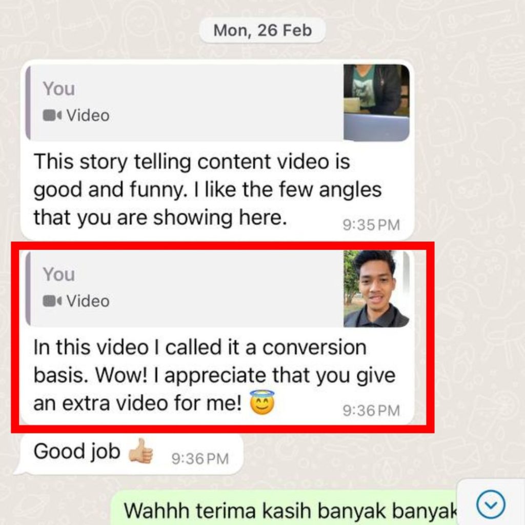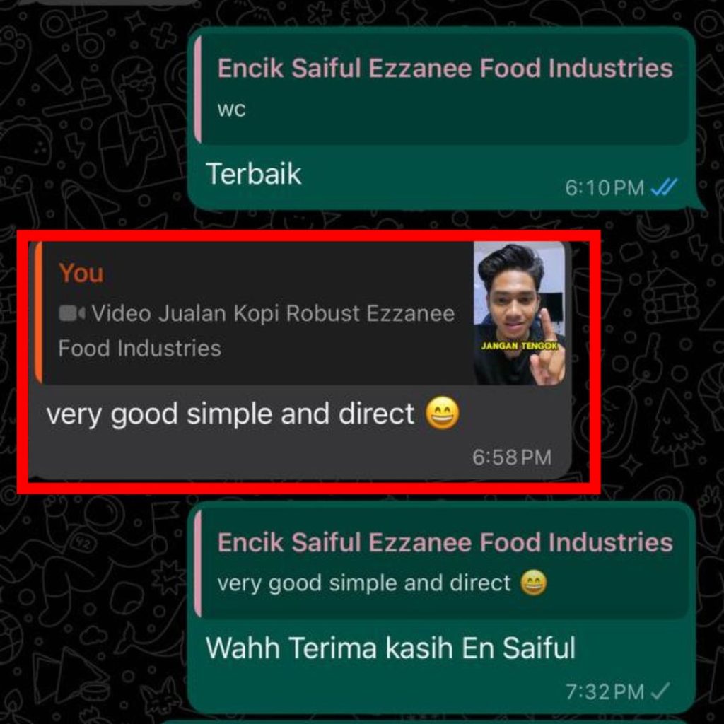 Jika anda serius nak tingkatkan jualan melalui video marketing, klik button WhatsApp sekarang.